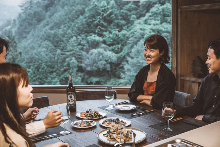 料理長が調理をしたミールキットで、お部屋で手軽にレストランクオリティの食事を。お部屋には小菅村のクラフトビールや山梨県産のソフトドリンクなどもご用意しております。山梨県産ワインを中心にボトルリストもございますので、窓からの景色を楽しみながら、大切な方々との語らいの時間をお過ごしください。