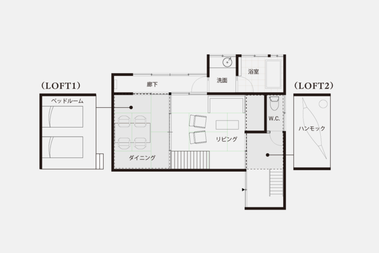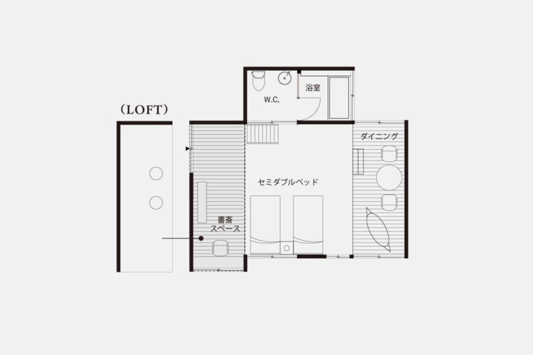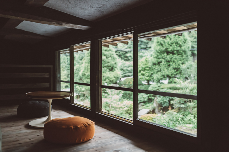 モダンな造りで、明るく開放的なお部屋。かつての土間を利用したダイニングスペースや、大きな窓に面した書斎があり、創作意欲を掻き立てられるような空間です。ロフトからは小菅村の山々が見え、四季折々の自然をお楽しみいただけます。