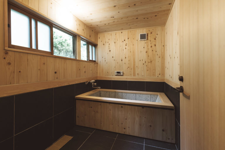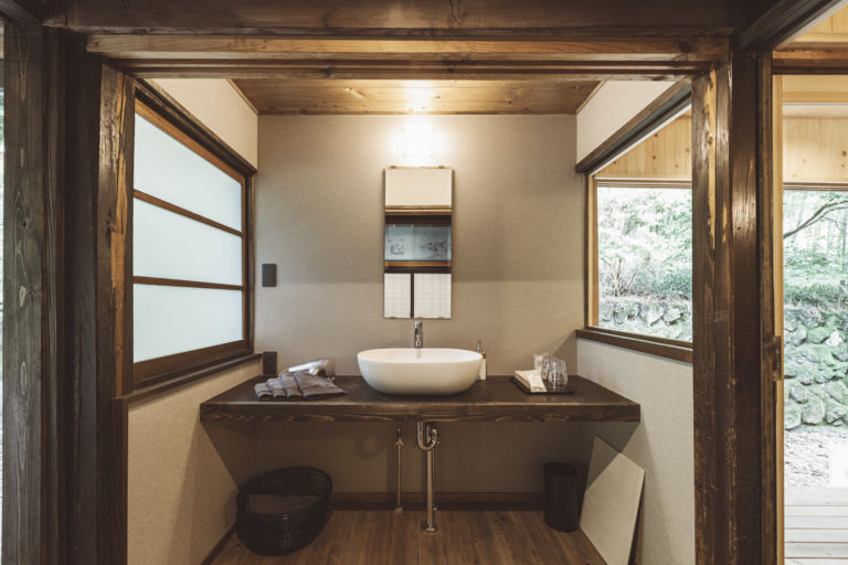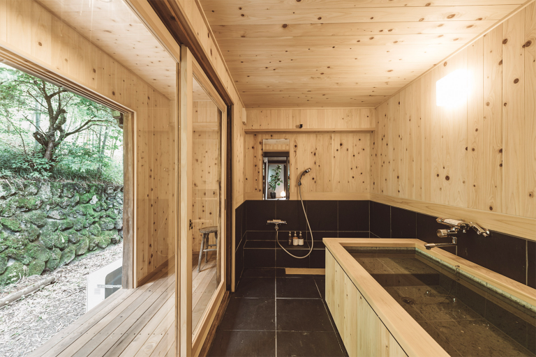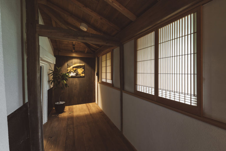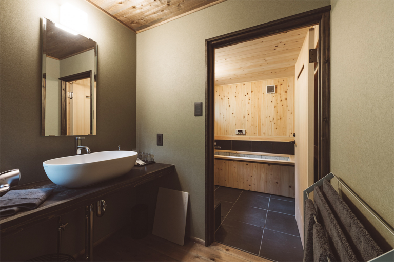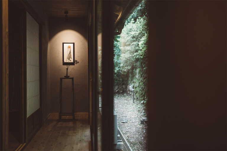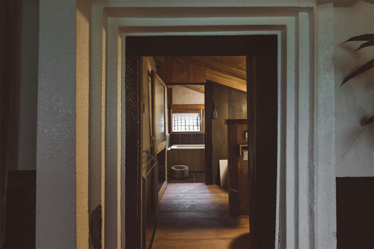 かつての土蔵を改装した離れのお部屋。重厚な蔵の創りを最大限に利用したユニークな浴室や、アートギャラリーのような廊下、秘密基地のような2階の畳の間など、誰にも邪魔されないプライベート空間をお楽しみください。